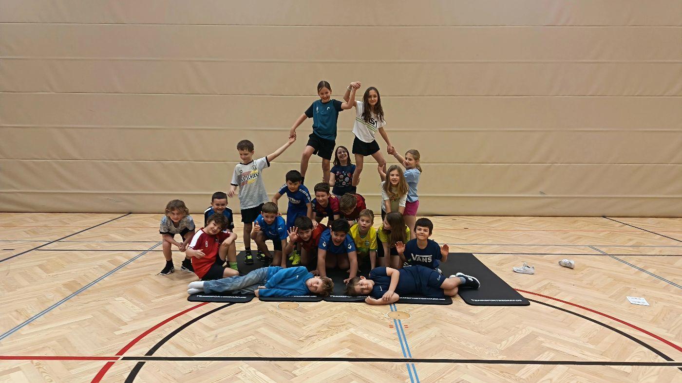 Akrobatikstunde mit Coach Bernhard 13. März 2026 von Petra Hofer 1a 1b 2a 2b 3a 3b 4a 4b Gütesiegel Gesunde Schule Unter Anleitung von Coach Bernhard durften letzte Woche die Kinder aller Schulstufen Menschenpyramiden bauen.