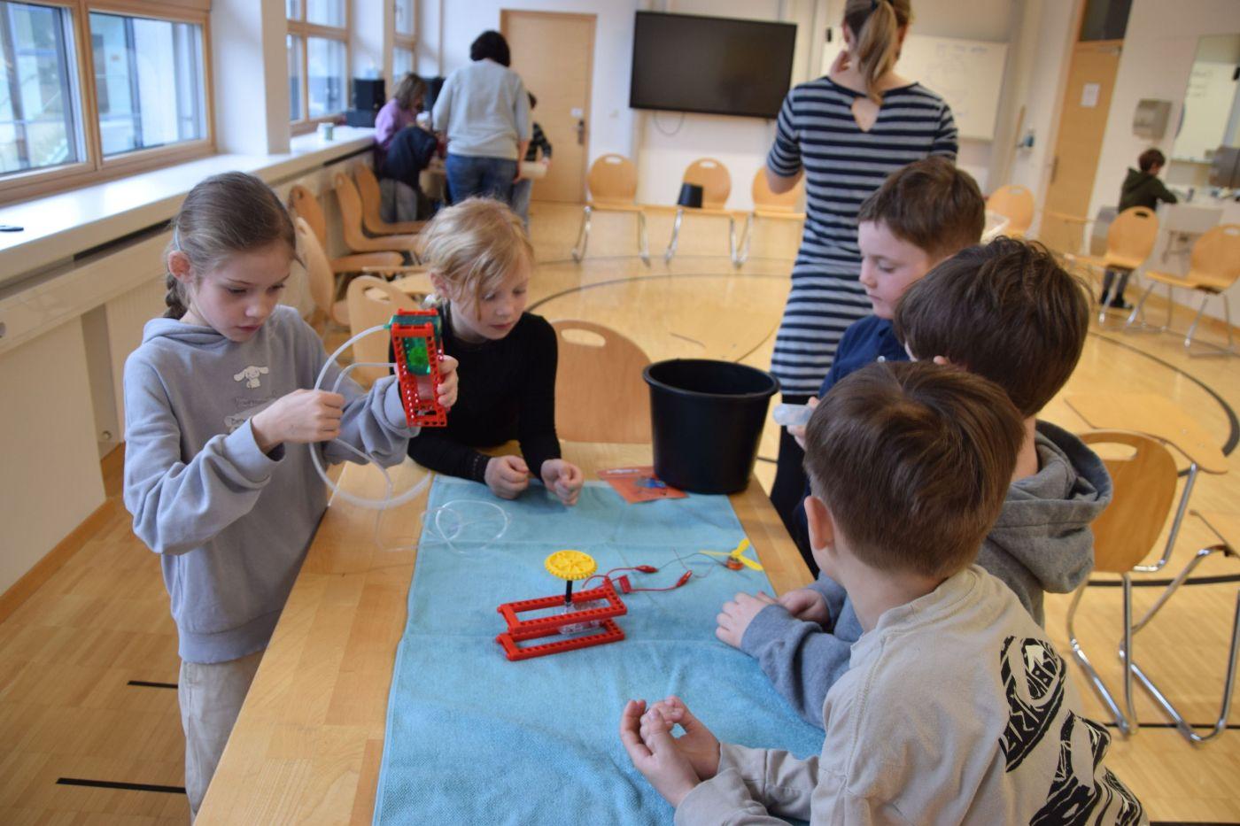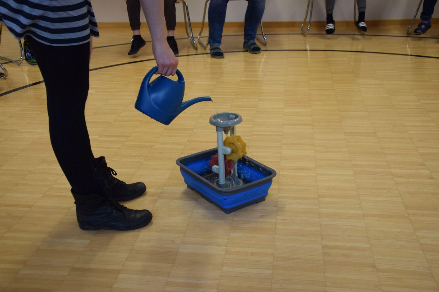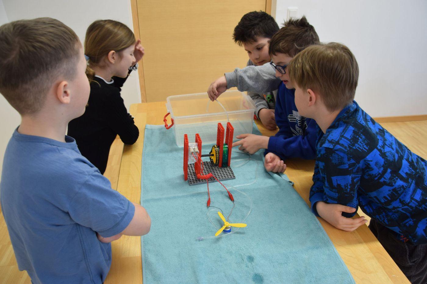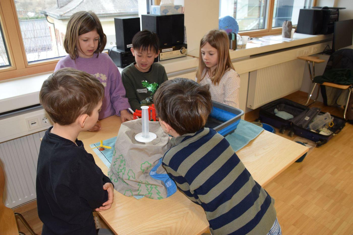 Die Kinder spannen mit vielen Versuchen und einer Menge Anschauungsmaterial einen Bogen vom „Blauen Planeten“ über den Wasserkreislauf bis hin zur Wasserkraft. Dabei wird auch ein Überblick über alle Energieträger und die Ziele des Landes Tirols geboten.